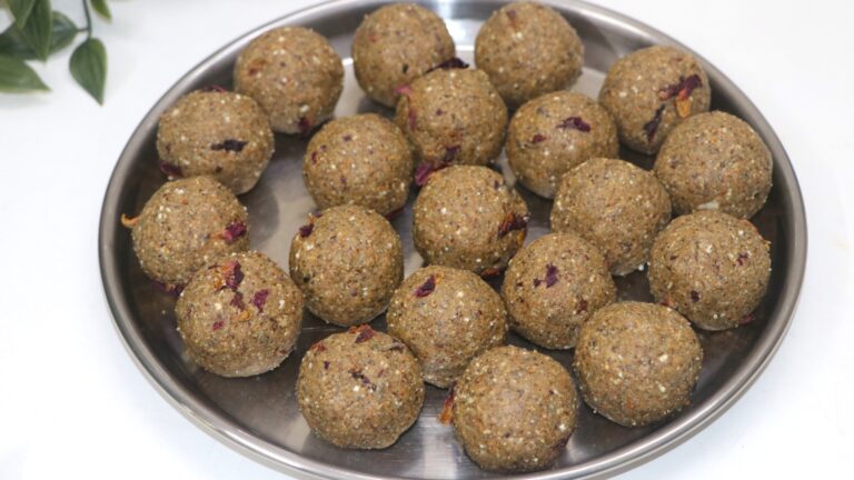 Today I am sharing a very special and incredibly healthy recipe – Biotin Laddoos. These laddus are a powerhouse of nutrients and are especially beneficial for hair fall, skin problems, joint pain, low energy, and vitamin deficiencies.