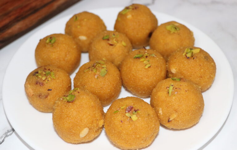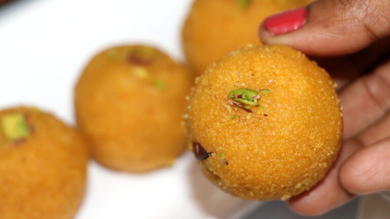 Today I’m sharing a very special recipe—Motichoor-style Besan Laddu, made without the effort of preparing boondi. Yes, you heard it right! These laddus turn out soft, grainy, and melt-in-the-mouth—just like the authentic temple-style or halwai-style laddus—but with a very simple method and minimal ghee.