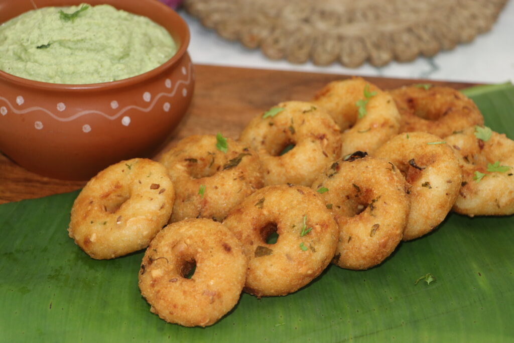 This vrat-special version of medu vada is gluten-free, light on the stomach, and packed with flavor from coconut, peanuts, green chilies, and ginger.