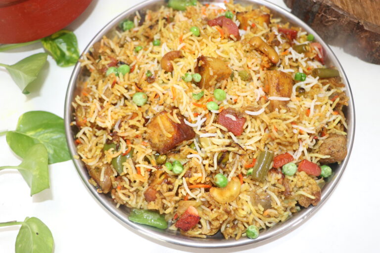 There’s something magical about the word Biryani ..the moment you hear it, your appetite wakes up on its own! And if that biryani is a true Hyderabadi-style dum biryani, filled with aromatic basmati rice, richly marinated vegetables, fried onions, ghee, saffron (or color), and delicate whole spices… the soul feels satisfied with the very first bite.