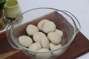 - After 30 minutes, knead the rested dough lightly once again. Divide it into equal-sized dough balls.