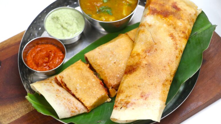 There’s something magical about a perfectly made Mysore Masala Dosa—crisp at the edges, soft at the center, filled with a lightly spiced potato masala, and layered with that signature fiery red chutney. It’s a dish that instantly transports you to a bustling Udupi hotel, where the aroma of ghee, roasted spices, and fermented batter fills the air.