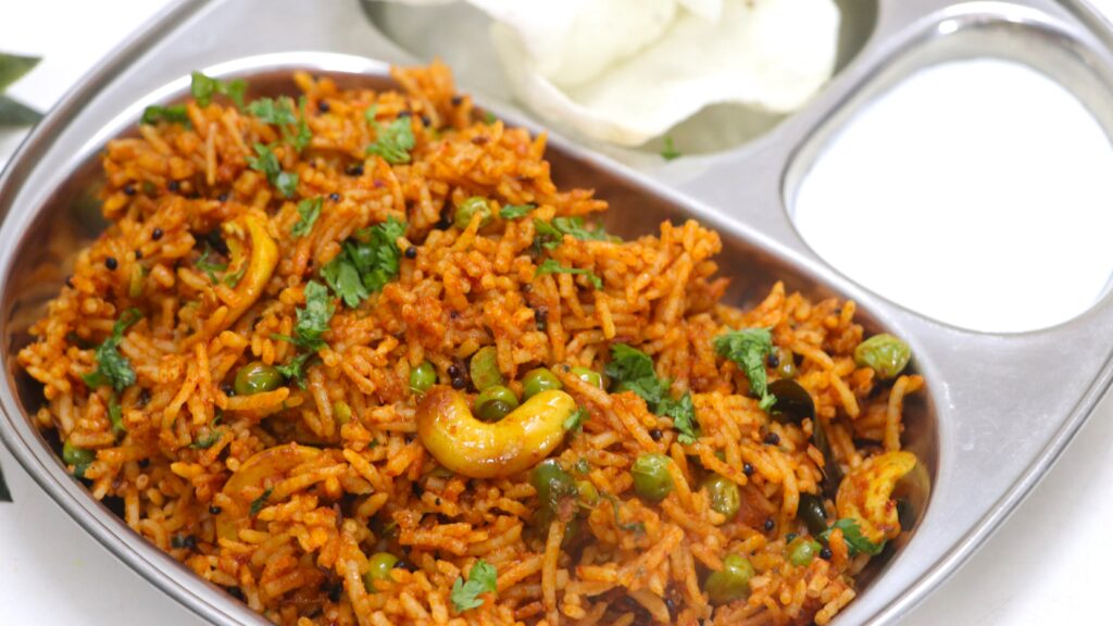 Rice recipes Hyderabadi Veg Dum Biryani 4 types of Quick | Tomato bhat, Herb Rice, Curry leaves Rice, Lemon Rice White Gravy Paneer Dum Biryani Moti Biryani Recipe | Veg Dum Biryani with Soya Balls Mexican Rice Bowl at Home | Quick Vegetarian Burrito Bowl Yellow Sweet Rice (Pile Mithe Chawal) Bisi Bele Bath Recipe | One-Pot Spicy Lentil Rice | Easy Temple Style South Indian rice Temple-Style Curd Rice (Thayir Sadam) simple, sattvic, and comforting Tomato Rice | Quick Tomato Rice Perfect for Lunch or Dinner Mexican Rice with Creamy Veggie Gravy without Onion & garlic